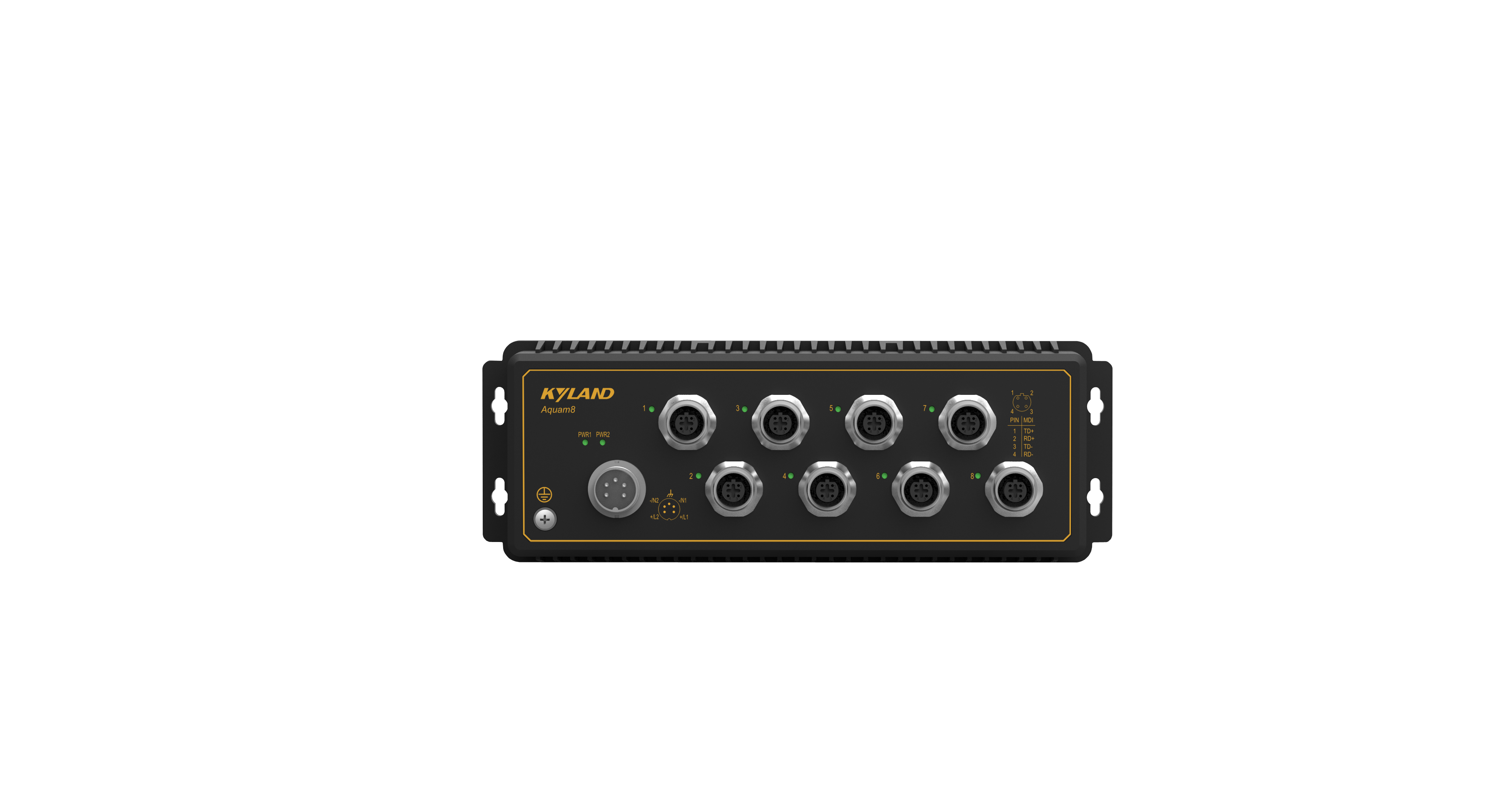 Aquam8 as IP65 and unmanaged Ethernet Switch, supports 8 Fast Ethernet interfaces of with M12 connector to ensure the tightness and the firmness of the connection and ensure reliable operation, especially suitable for application that are subject to high vibration and shock.
