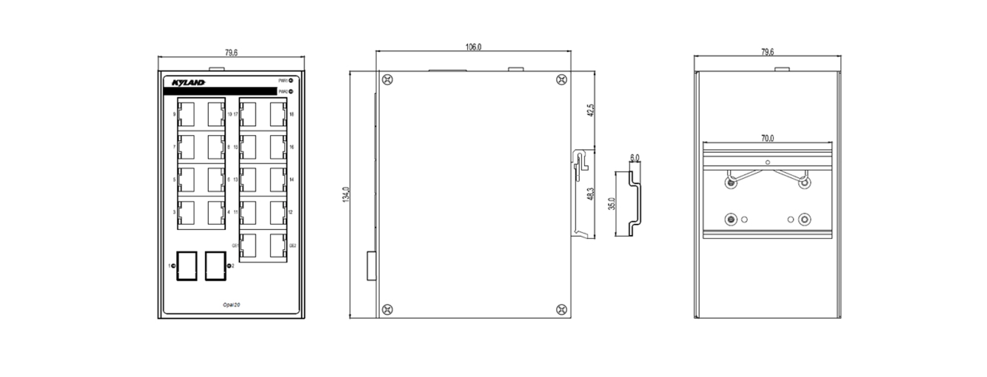 Opal20 series is a well-designed entry level unmanaged switches with compact structure, flexible port combinations and reliable performance, fulfilling different demands in automation control applications. Opal20 supports 2 optional 10/100/1000Base-TX ports, 2 optional 100Base-FX ports and up to 16 10/100Base-TX RJ45 ports. Opal20 support SC/ST/SFP type fiber ports, redundant power inputs, metal housing with IP30 protection class, thus ensuring fast and reliable data transmission in harsh industrial environments. Opal20 provide both standard (-10°C to 60°C) operating temperature range model and wide (-40°C to 75°C) operating temperature range models to meet different applications.